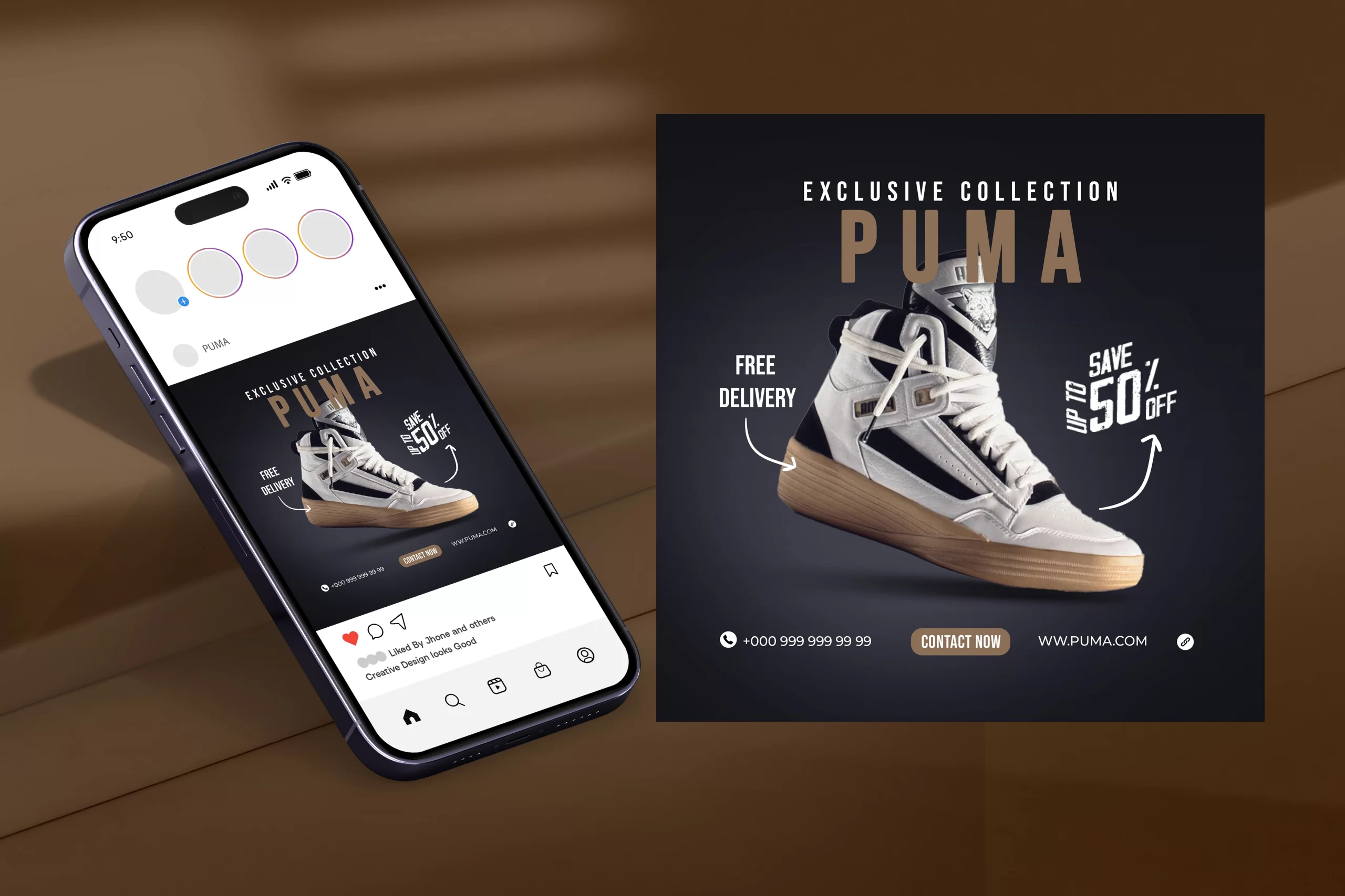 Kullanılan Tarz: Modern / Dinamik / Kampanyalı Ürün Odaklı Amaç: Puma'nın özel koleksiyonunu tanıtmak, cazip indirim ve ücretsiz teslimat gibi avantajlarla satışları artırmak ve marka bilinirliğini pekiştirmek.